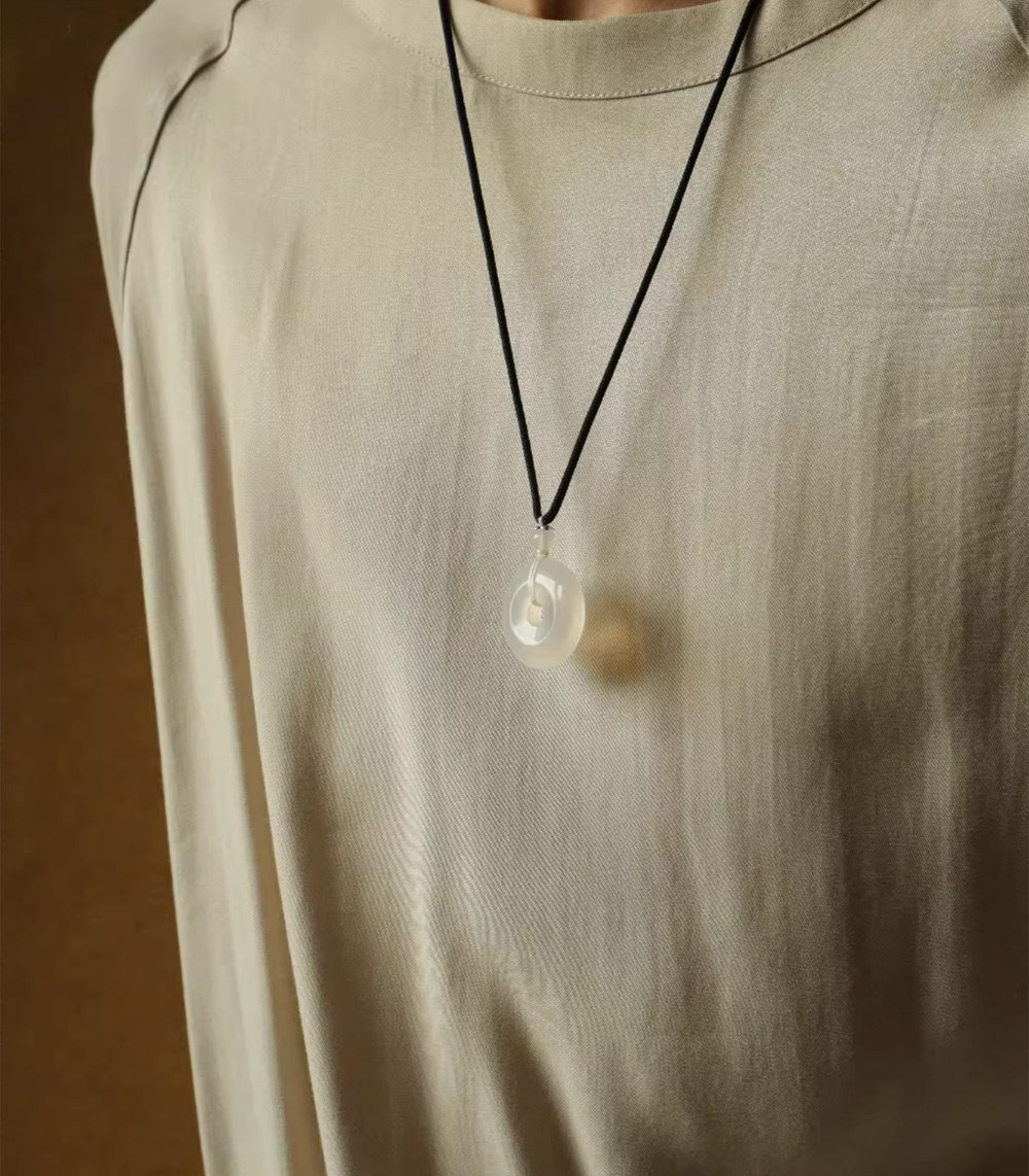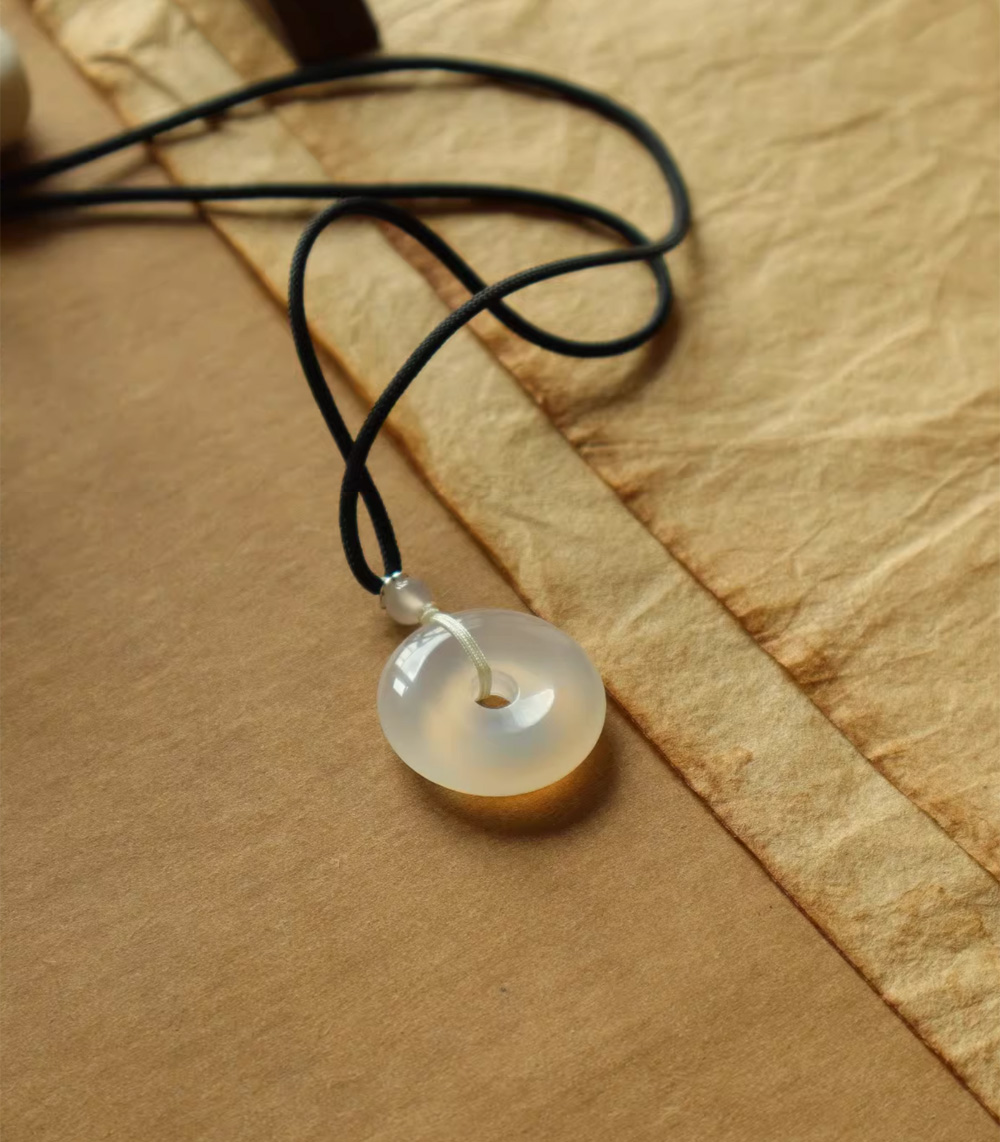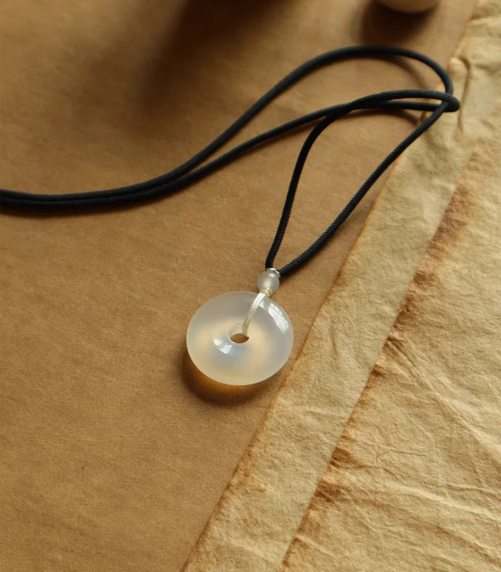 Lucky White Agate Peace Buckle Pendant Jade Necklace Pendant