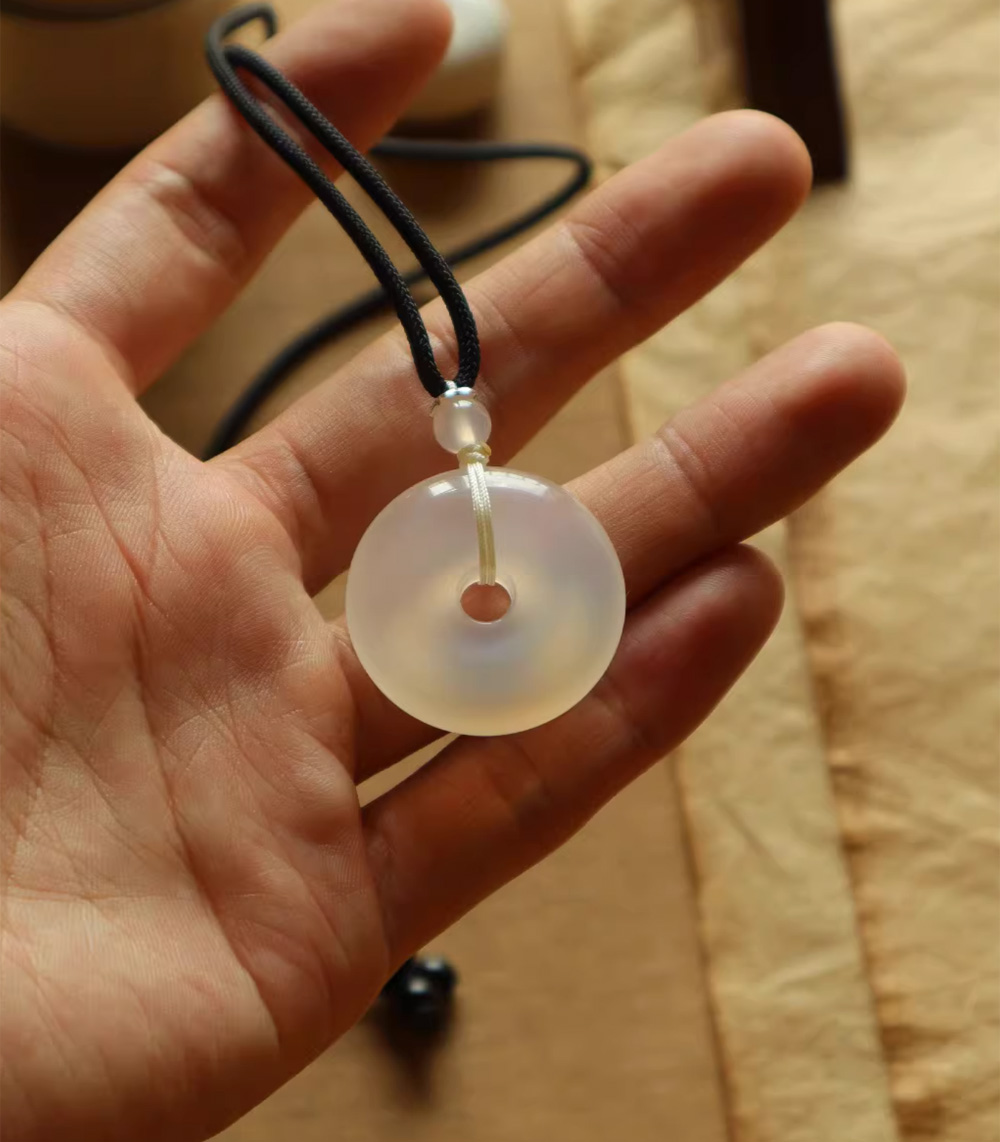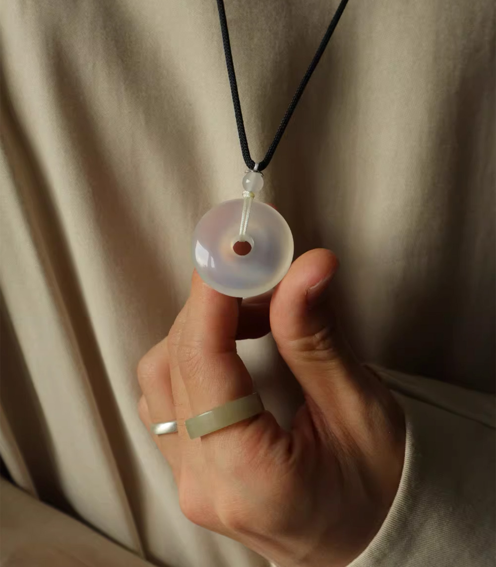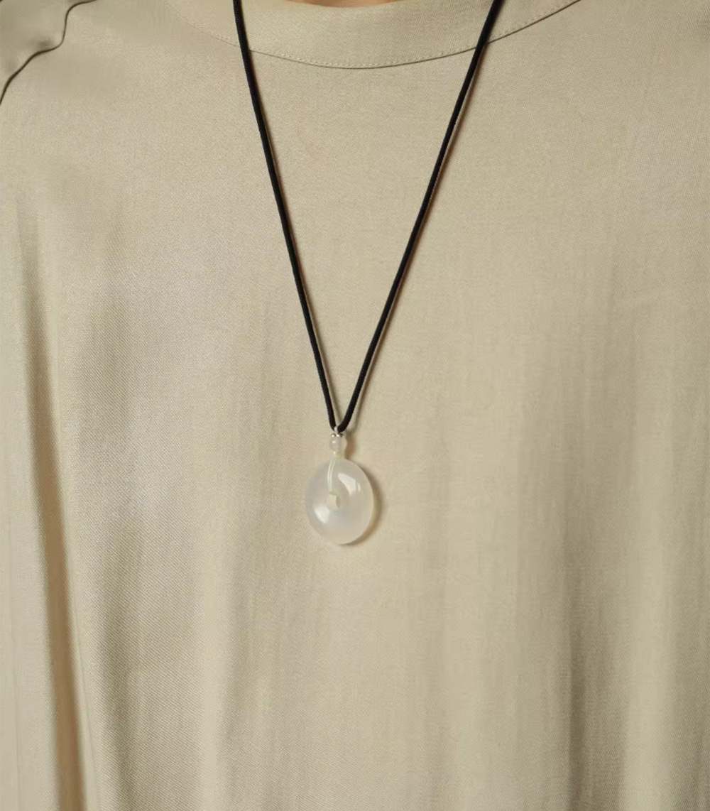 Lucky White Agate Peace Buckle Pendant Jade Necklace Pendant