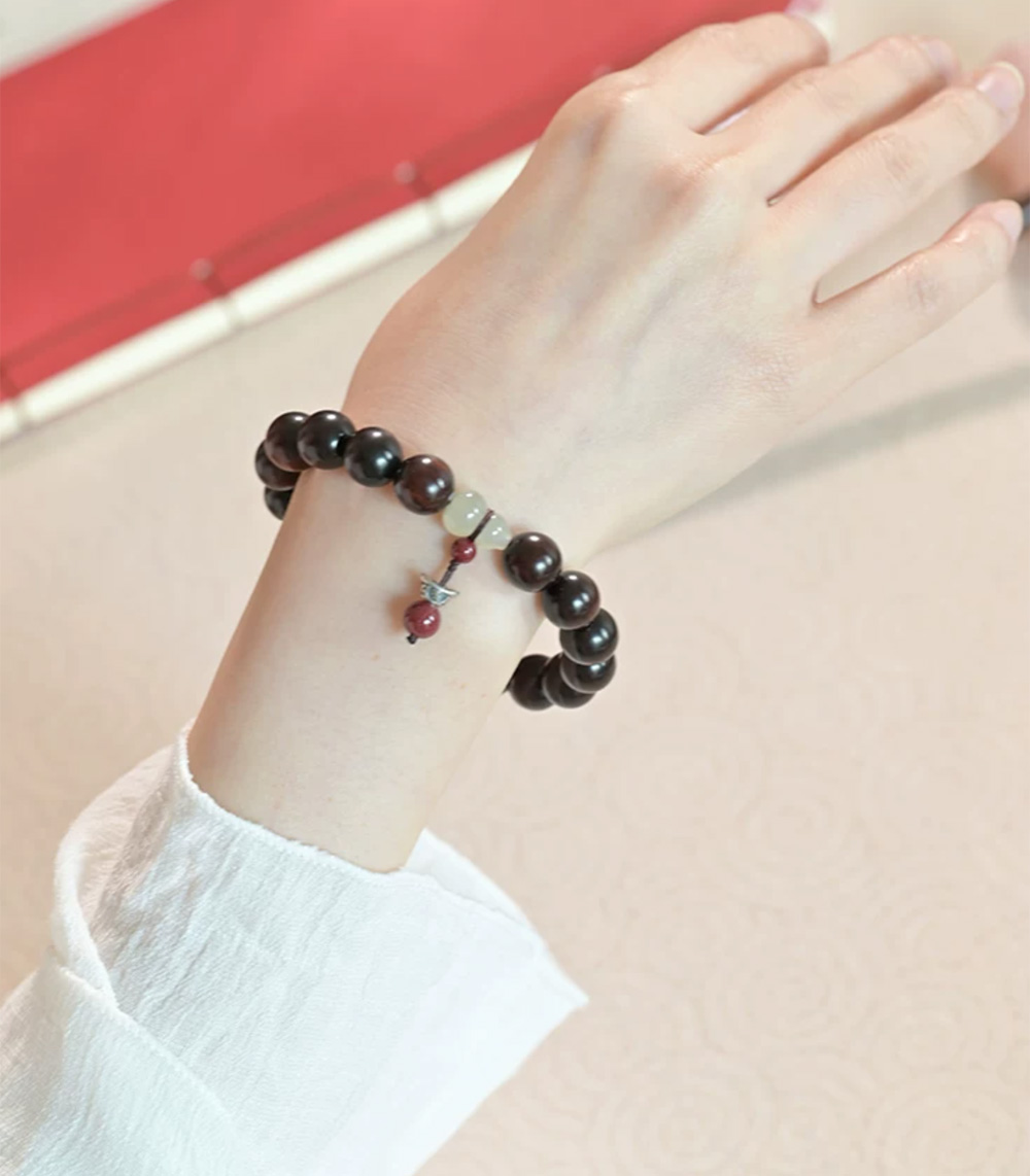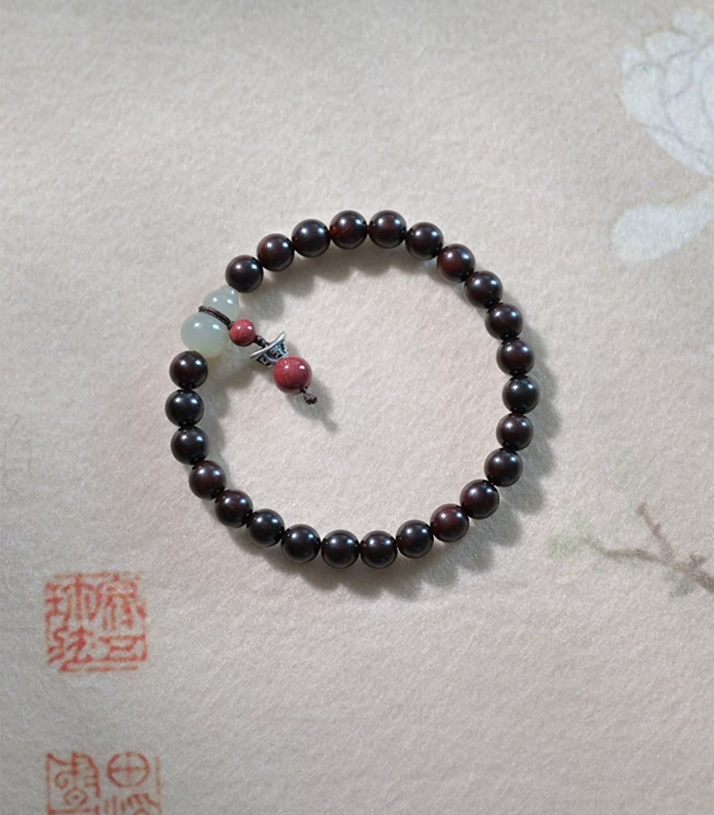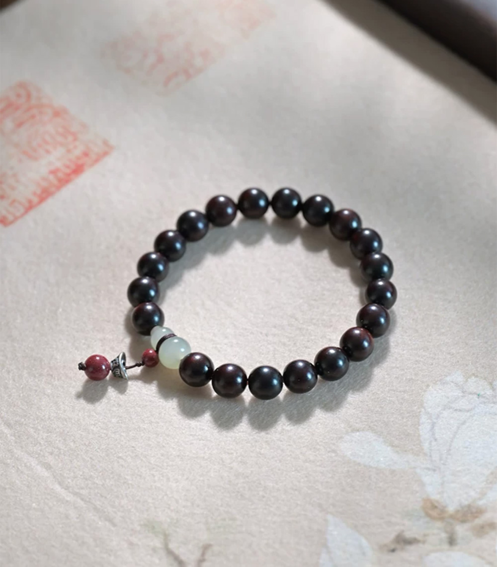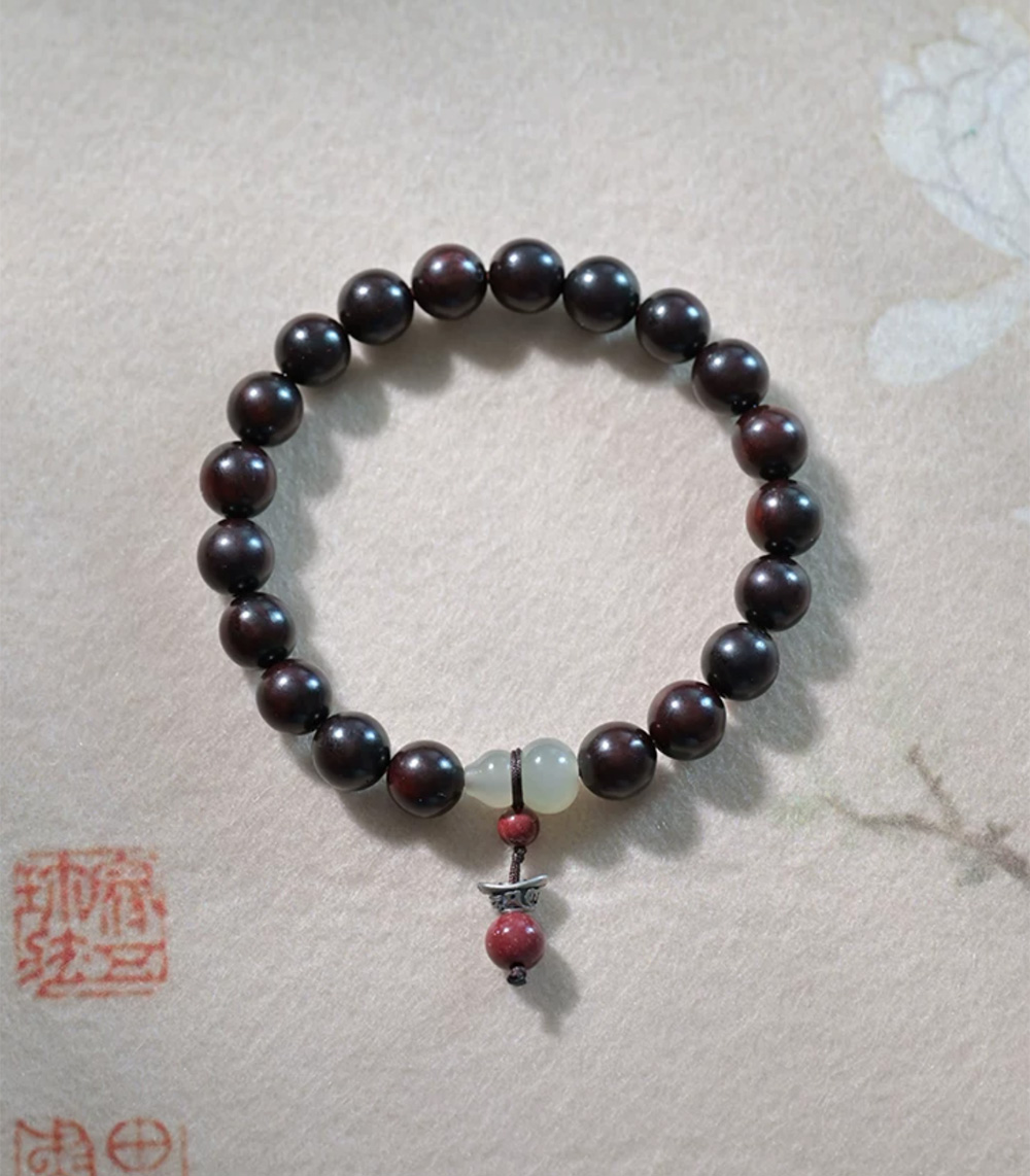 Small-leaf Rosewood Prayer Beads and Jade Gourd Bracelet Unisex