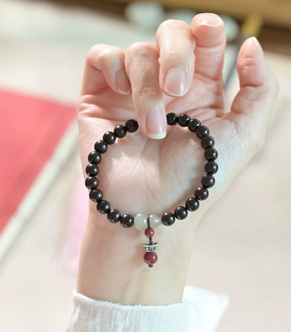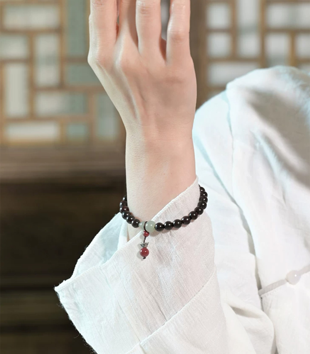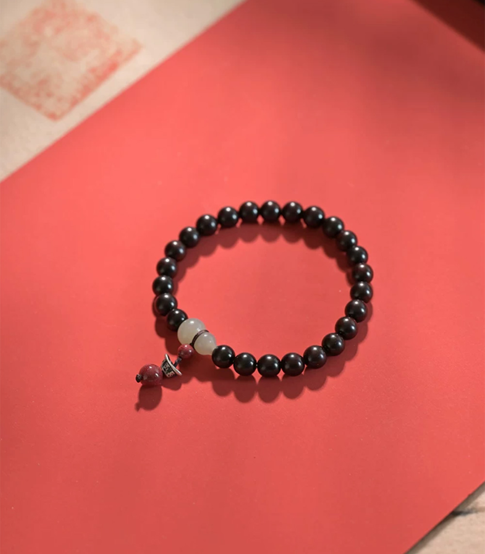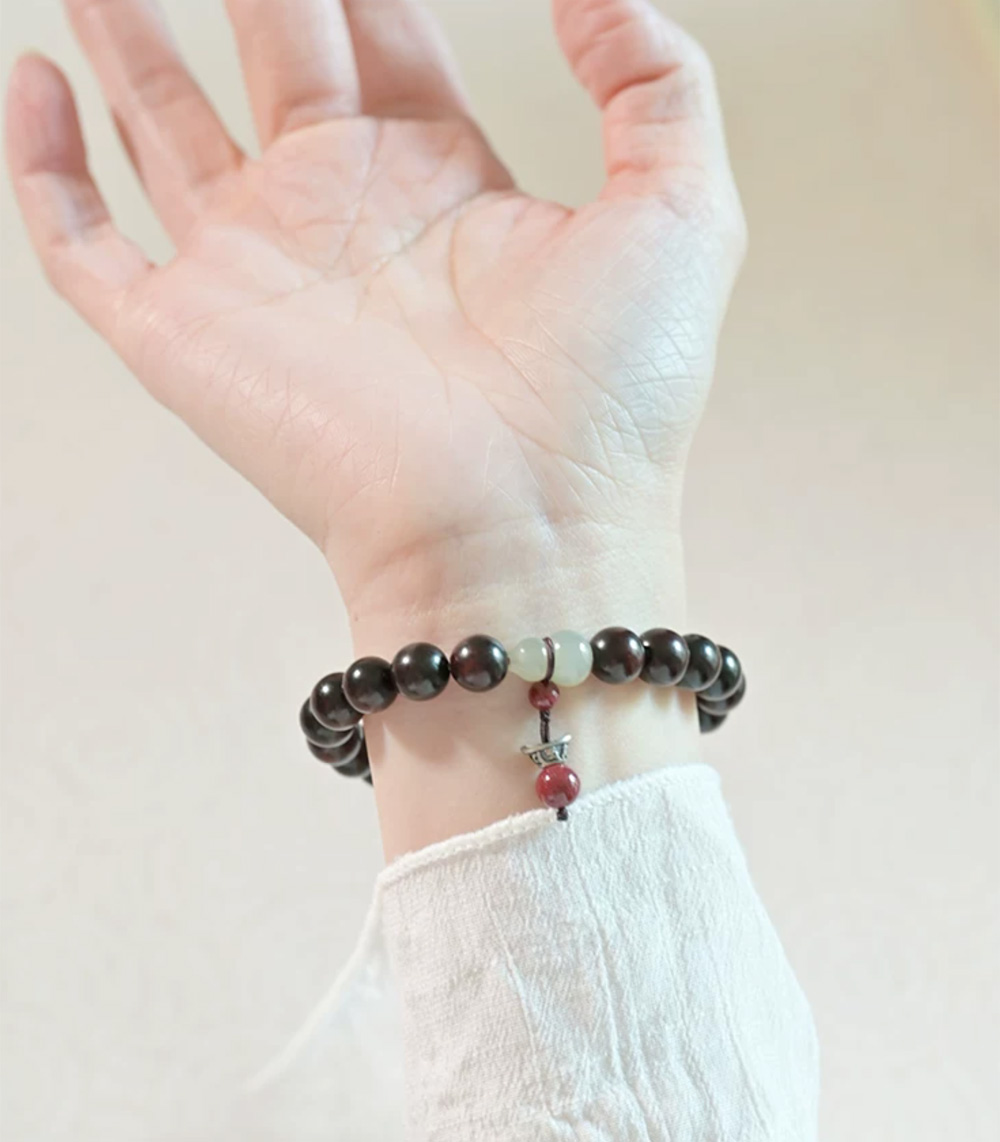 Small-leaf Rosewood Prayer Beads and Jade Gourd Bracelet Unisex